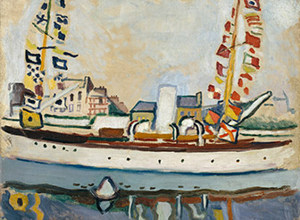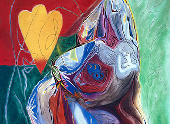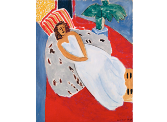 Jeune Femme en blanc, fond rouge (Modèle allongé, robe blanche), 1946